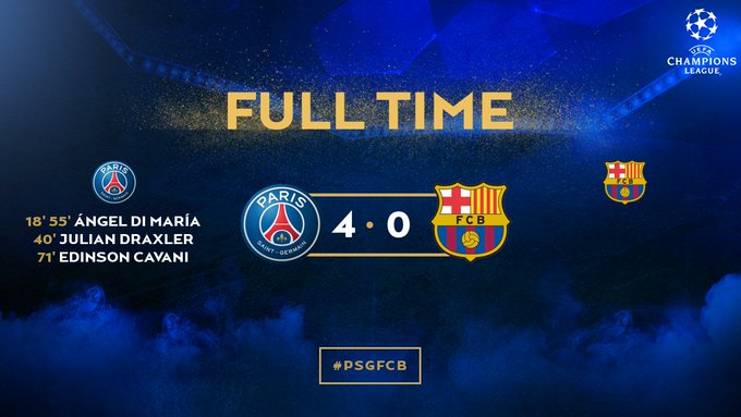 FULL TIME: An absolutely masterful performance from PSG, who take a 4-0 first-leg lead over Barcelona!!! #PSGFCB#PARISESTMAGIQUE